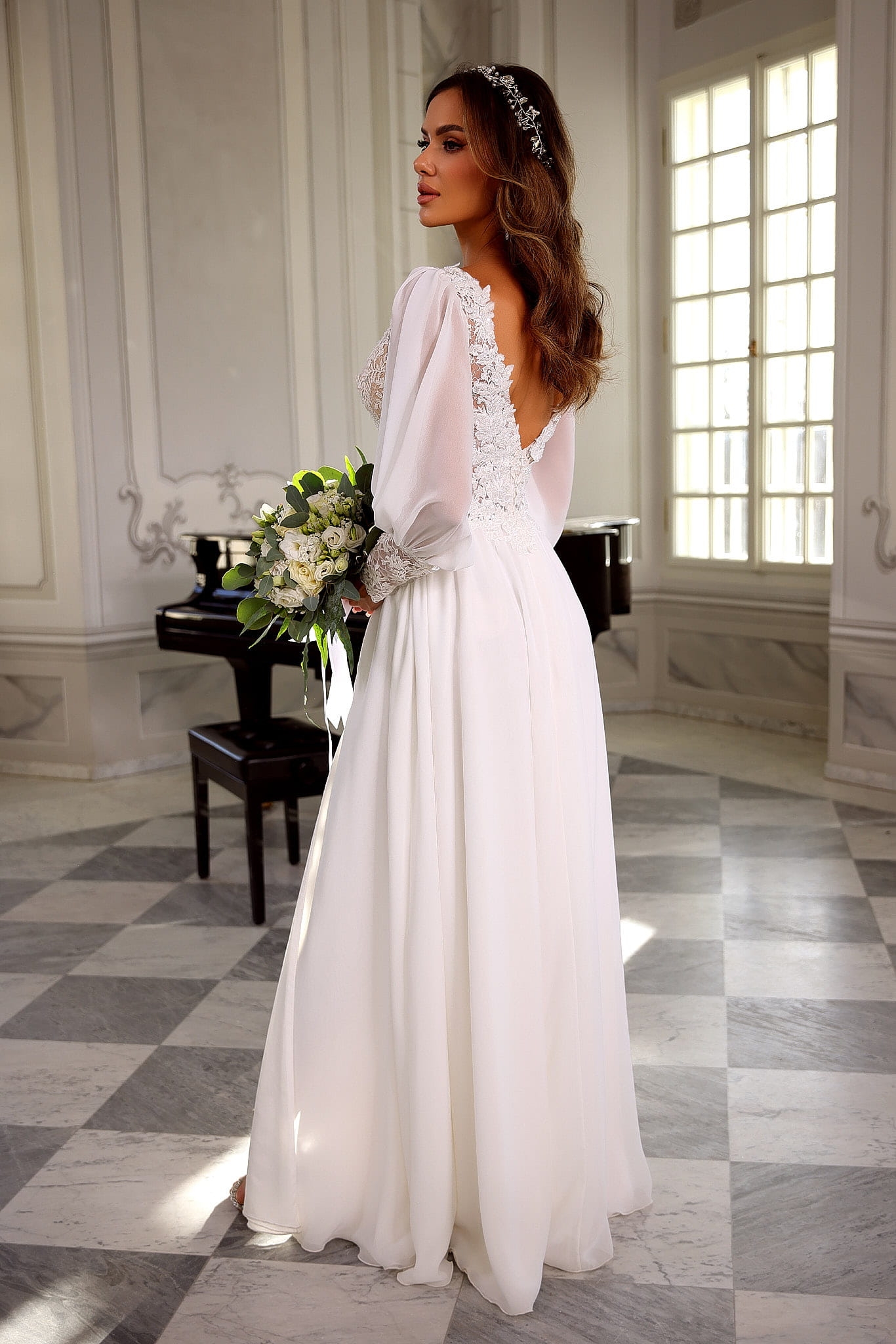 Suknia dostępna wyłącznie w opcji szycia na miarę, czyli tworzymy suknię idealnie dopasowaną do Ciebie.