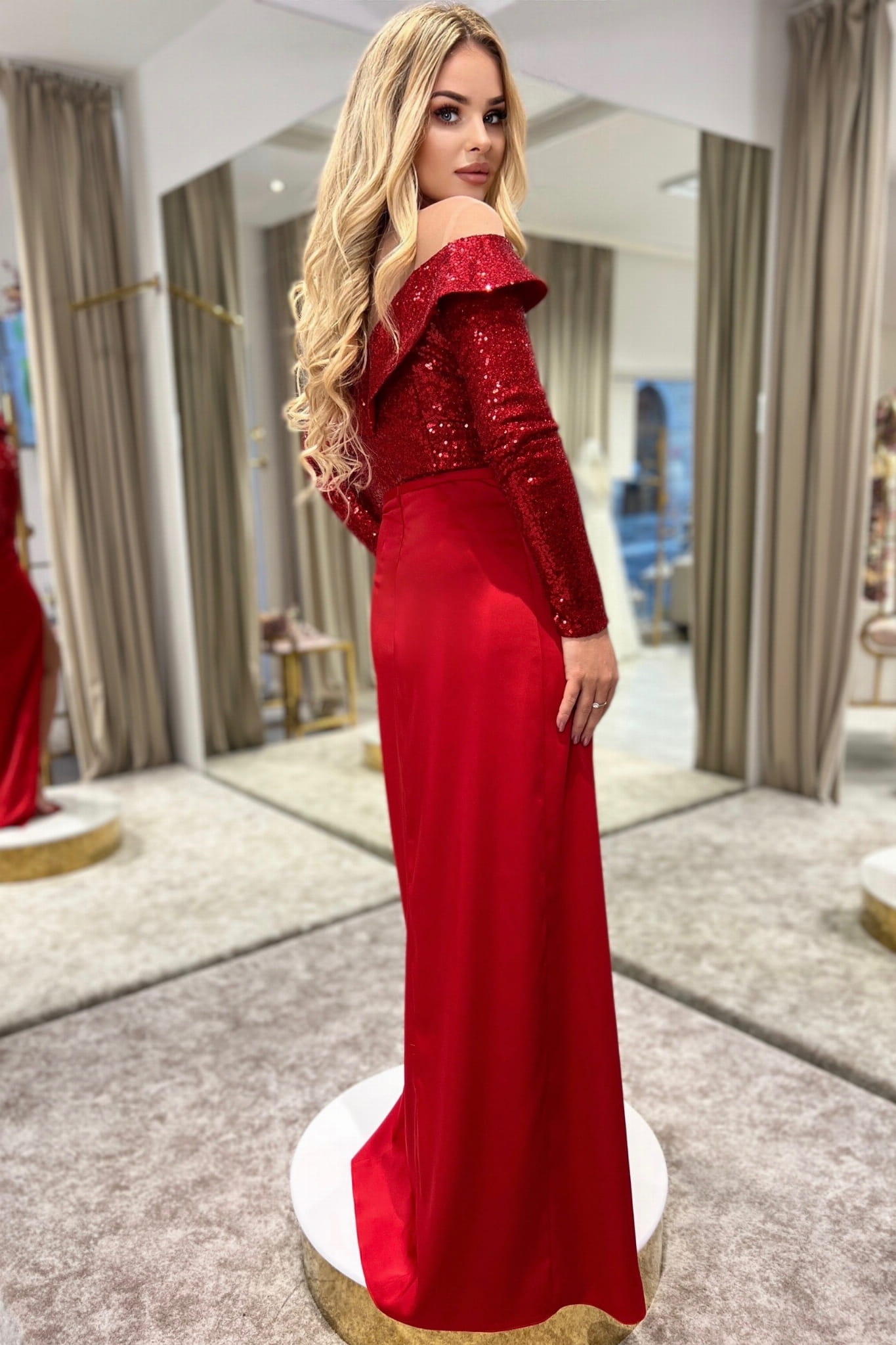 Czerwona długa suknia cekinowa