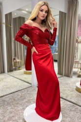 GALLA RED - długa suknia z cekin