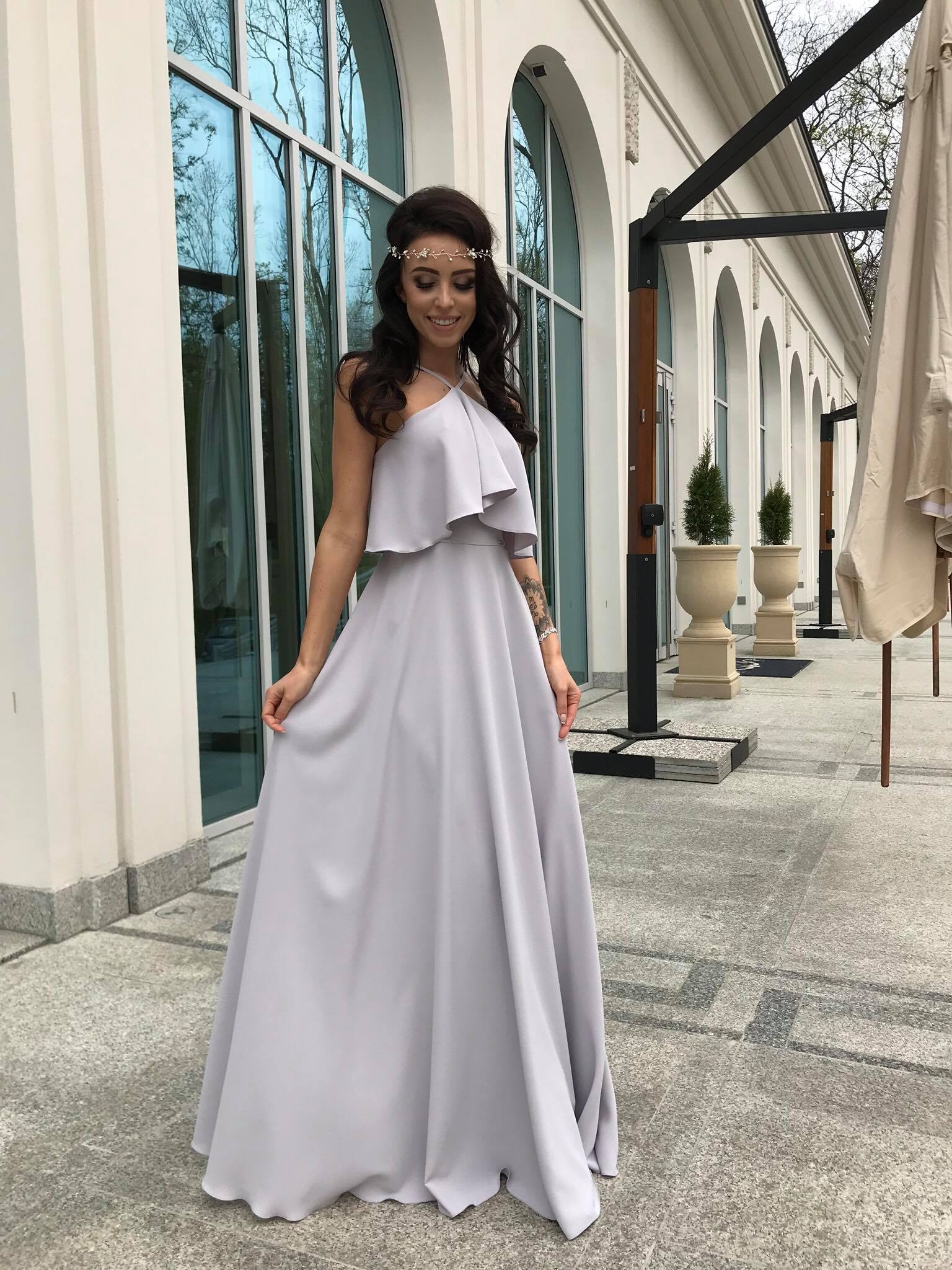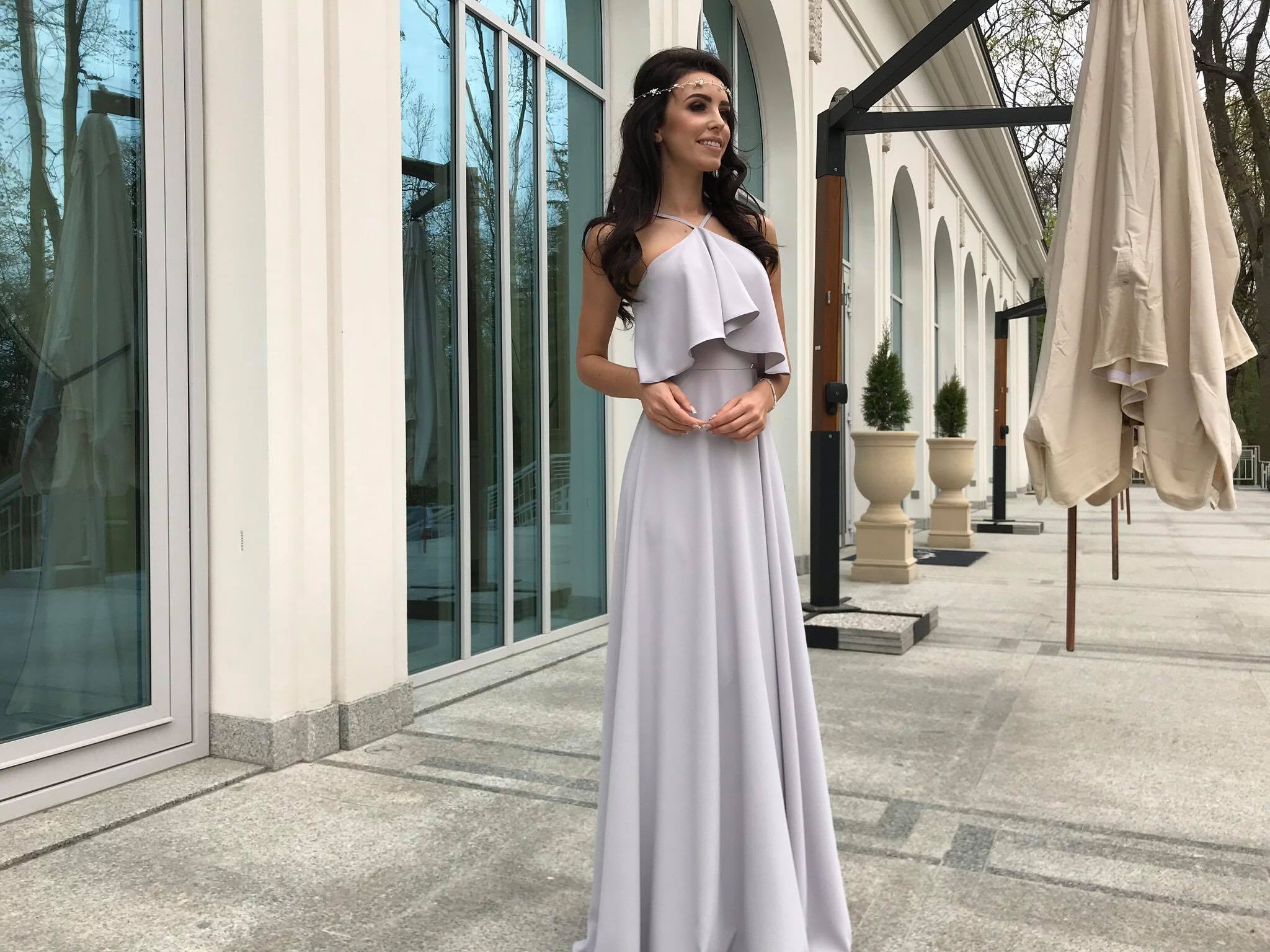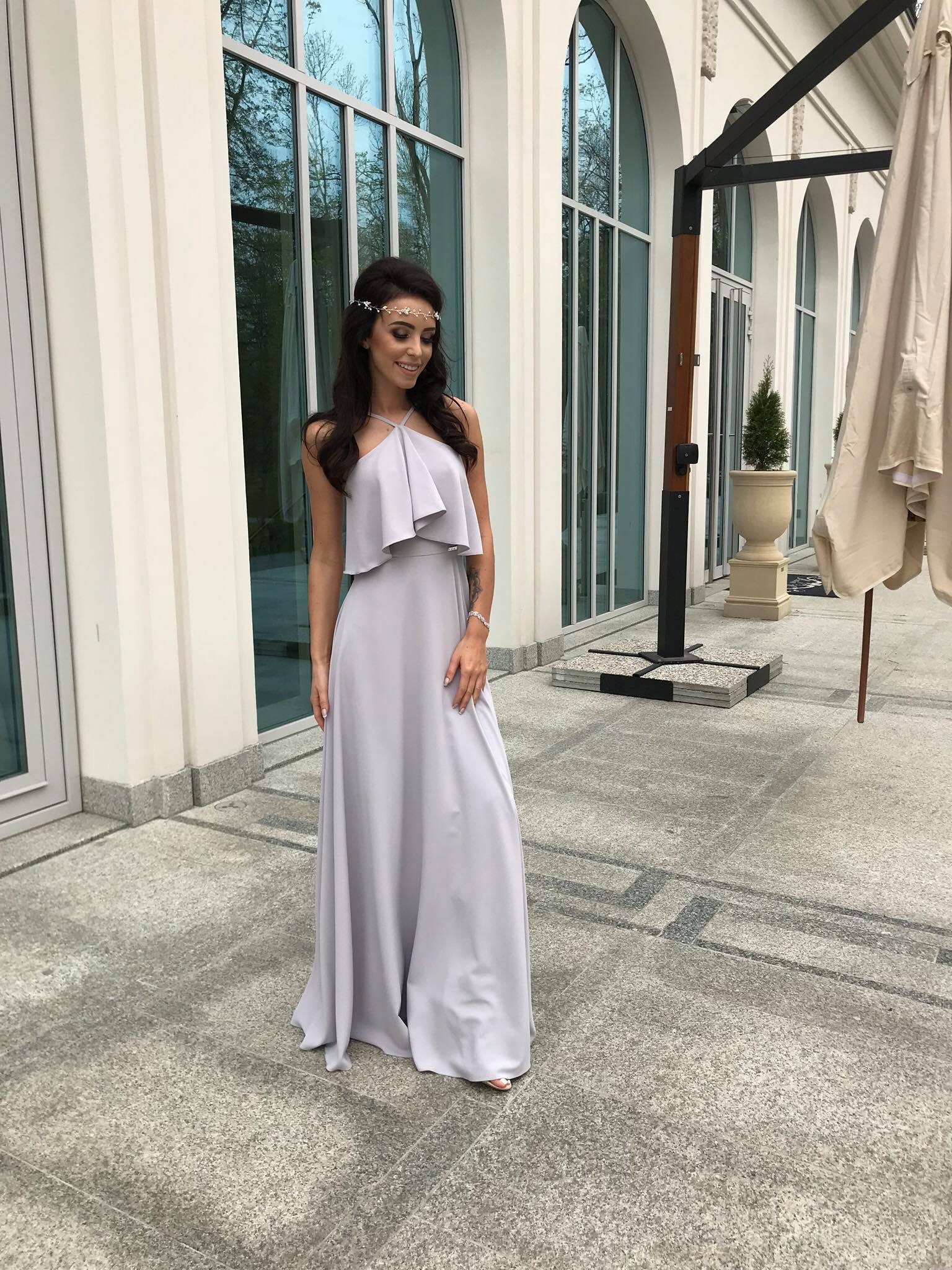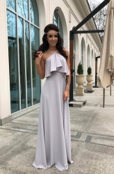 LIVIA - Długa szara suknia z falbaną
